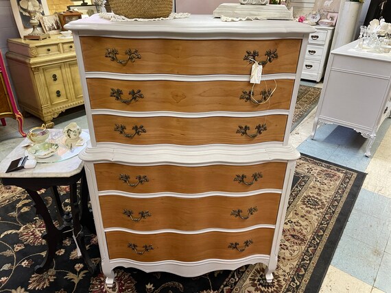 Hand Painted Dresser French Light Gray Natural Wood Drawers Etsy Uk